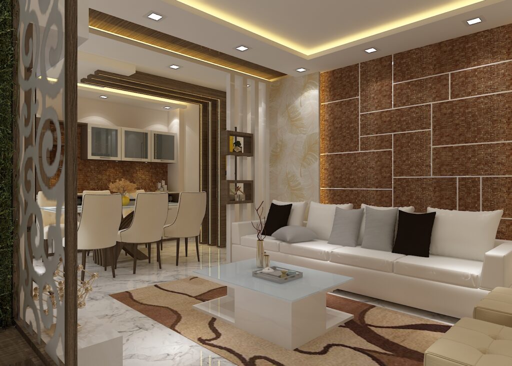Quality materials play a crucial role in luxury interiors. We use carefully selected finishes, premium upholstery, elegant wall treatments, and high-quality décor elements to ensure long-lasting beauty.